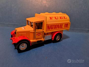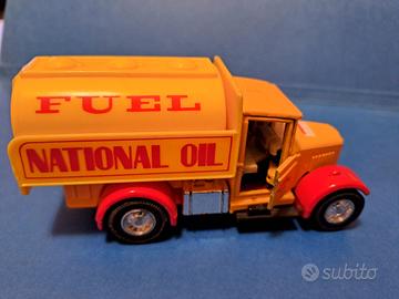 Modellino camioncino con cisterna Antique Lorry della "Hobby Dax". Modello "Fuel National Oil". Pezzo vintage da collezione in metallo e plastica, con portiere apribili, e motore a retrocarica. Misura: 12cm. Scatola originale con qualche segno di usura. Prezzo 10 euro più spedizione