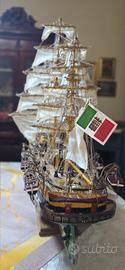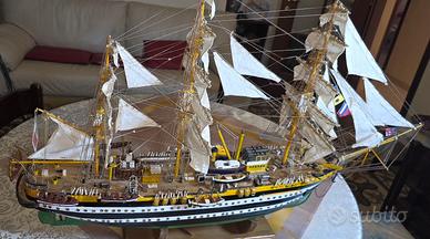 Vendo splendida nave a vela realizzata interamente a mano da artigiano esperto, curata in ogni dettaglio: vele in tessuto, alberi in legno, cordame completo, cannoni, scialuppe e bandiere. La riproduzione si ispira alla celebre nave scuola Amerigo Vespucci, simbolo della Marina Militare Italiana.