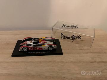 Vendo questo bellissimo modellino di Audi R 10, auto che ha vinto la 24 ore di Le Mans nel 2008, impreziosito dall’autografo di Dindo Capello, uno dei tre piloti voncitori.