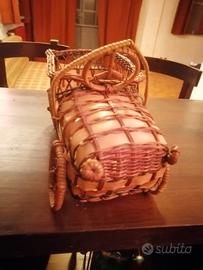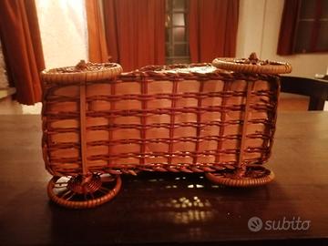 Splendido modellino di auto d'epoca realizzato interamente a mano con tecniche di intreccio artigianale (vimini e paglia). Un pezzo unico che unisce l'estetica del collezionismo alla praticità di un complemento d'arredo.