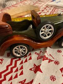 Elegante modellino decorativo di auto vintage in legno, completo di scatola espositiva trasparente.
