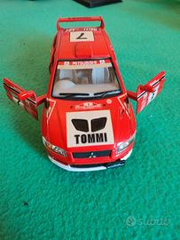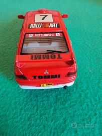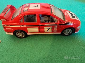 Modello: Mitsubishi Lancer Evolution VII (WRC Version). Livrea: Corrisponde alla vettura ufficiale del Rally di Sanremo 2001 (anche se Kinsmart a volte mescola dettagli di vari rally, come il Rally di Finlandia). Il pilota è Tommi Mäkinen (indicato come "TOMMI" sul cofano e sullo spoiler). Produttore: Kinsmart (codice modello KT5048W). Scala: 1/36. Funzioni: Porte anteriori apribili e meccanismo a retrocarica ("Pull Back & Go").