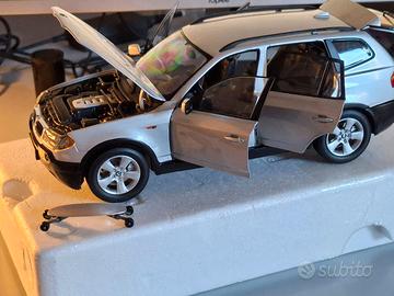 BMW X3 (E83) 1:18 Kyosho - Dealer Edition BMW - Argento - Full Opening - COME NUOVO ________________________________________ DESCRIZIONE DEL MODELLO In vendita splendido modellino da collezione in scala 1:18 della BMW X3 prima serie (E83), prodotto da Kyosho in edizione ufficiale per concessionarie BMW (Dealer Edition). Il modello è un pezzo di alta ingegneria in metallo (die-cast), molto più dettagliato rispetto alle versioni economiche (Bburago/Welly/Maisto), con finiture di livello superiore. •Produttore: Kyosho (Serie Dealer BMW) •Codice Prodotto: 80 43 0 300 735 •Colore: Titan Silver Metallic (Argento originale BMW) •Condizioni: Eccellenti / Near Mint. Vernice brillante senza segni di fioritura (rash), graffi o polvere. Cristalli integri e trasparenti. DETTAGLI E CARATTERISTICHE TECNICHE •6 Parti Apribili: 4 portiere, cofano motore e portellone posteriore (con lunotto apribile separatamente). •Meccanismi: Ruote sterzanti collegate al volante e sospensioni molleggiate indipendenti su ogni ruota. •Interni: Moquette reale (floccaggio) su pavimento e bagagliaio. Cinture di sicurezza in tessuto con fibbie riportate. •Vano Motore: Riproduzione fedele del motore 6 cilindri con loghi BMW, cablaggi a vista e pistoncini di supporto realistici. •Accessori Extra Inclusi: Presenti gli accessori originali removibili del bagagliaio (Tendalino copribagagli nero e ripiano estraibile argento), spesso smarriti nei modelli usati. CONFEZIONE E SPEDIZIONE •Packaging: Presente il guscio protettivo originale in polistirolo sagomato e bustina di silica gel originale. (Manca solo il cartone esterno nero). •Garanzia di Spedizione: Il modello verrà spedito all'interno del suo guscio originale, ulteriormente imballato in una scatola di cartone rigido per garantire la massima protezione. ________________________________________