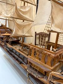 Grande Modello di Nave in Legno Massello Replica Autentica rifinita a mano, Nave da Guerra a Vela Artigianale con Scafo Dettagliato, Alberi e Vele, Esposizione Nautica per Ufficio,
