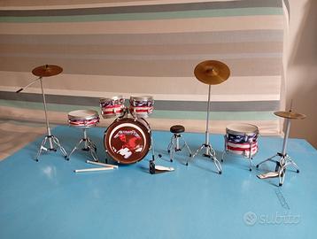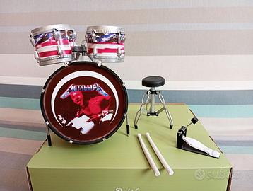 BATTERIA dei METALLICA COMPLETA Miniatura perfetta, rifinita nei minimi dettagli di altissima qualità in metallo e plastica Piatti altezza 21 cm Cassa con due tom altezza 15 cm Super accessoriata: sgabello - bacchette - pedale charleston - meccaniche in metallo Consegna a mano Milano Voghera o spedisco