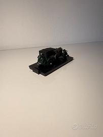In vendita splendida riproduzione in scala di una vera leggenda dell'automobilismo britannico: la Bentley 4½ Litre Supercharged, meglio conosciuta come "Blower". Il modellino presenta la celebre targa UR 6571, che identifica l'auto originale guidata dal leggendario pilota Tim Birkin. Il modello è rifinito nell'iconico colore British Racing Green e presenta dettagli d'epoca molto curati, come le cinghie in cuoio sul cofano, le ruote a raggi e la bandiera Union Jack sulla fiancata. Condizioni dell'oggetto: Auto: In ottime condizioni estetiche, ben conservata e priva di graffi o parti mancanti evidenti. Base: Il modellino è fissato alla sua base espositiva nera originale. Nota bene: Manca la protezione superiore in plastica trasparente (teca). Specifiche in breve: Modello: Bentley 4½ Litre "Blower" Anno originale: 1929 Colore: Verde corsa inglese Particolarità: Targa storica UR 6571