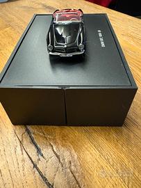 Modellino cabrio. Perfetto. Incollato ed esposto su parallelepipedo nero, In plastica, che può servire anxhe per riporre l’oggetto.