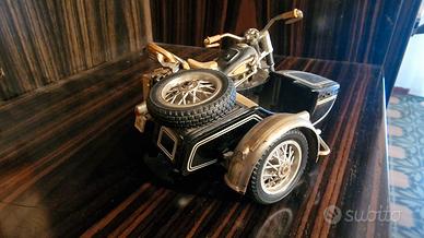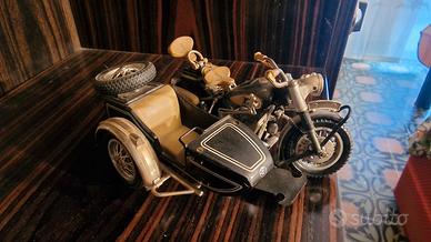 Il modellino è una replica della moto militare BMW R75 con sidecar, prodotta dall'azienda italiana Italeri. Sviluppata nel 1938 per l'esercito tedesco, la R75 era una motocicletta tecnicamente avanzata, dotata di trazione integrale e differenziale bloccabile sulla ruota posteriore e sulla ruota del sidecar.