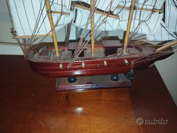 Modellino in legno del "bounty" ,ben tenuto, misura base 15 cm, da poppa a prua 28 cm, altezza a vela 30 cm