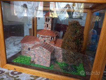modellino chiesa medievale fatto a mano con vetrinetta. preferibile consegna di persona per evitare eventuali danni alla vetrinetta con spedizione