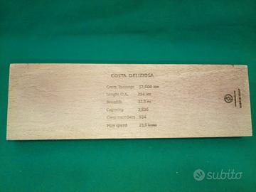Modellino Nave della flotta Costa Crociere COSTA DELIZIOSA in metallo argentato su base in legno dim. 23x7,5xh 6,5 cm .
