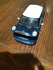 Propongo bellissimo modellino autovettura mini cooper carrozzeria colore blu elettrico e cappotta bianca.