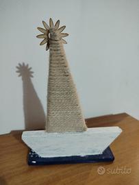 Modellino di barca in legno e materiali da riciclo e nuovi.