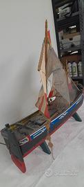 modellino di unBragozzo, una tradizionale imbarcazione da pesca e da carico in legno, tipica del medio e alto Adriatico. Questa barca era particolarmente diffusa tra il XVIII e il XIX secolo, con origini strettamente legate alla città diChioggia.