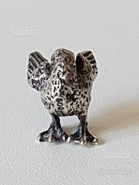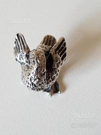 Modellino miniatura di uccello - volatle realizzato in argento 800 massiccio. Peso 11,70 grammi. Dimensioni cm 2,1 x 1,7 x altezza cm 2,3. Spese di spedizione euro 5.