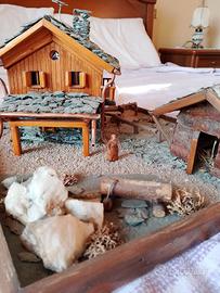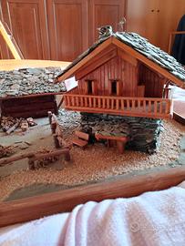 cedo modello in scala di fattoria valle d' Aosta, unico e costruito a mano da artigiano, utilizzati materiali di legno e roccia della valle d' Aosta.