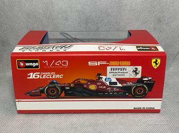 modellino originale Ferrari sf25 Burago autografato da Charles Leclerc, scala 1:43