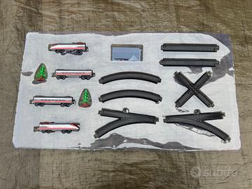 Modellino freccia rossa ETR 500, con una locomotiva elettrica, binari e una stazione con luci e suoni. Ottime condizioni.
