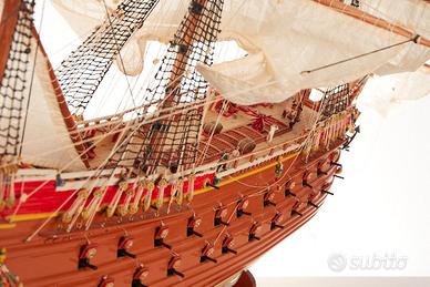 L'intera realizzazione, costruzione, verniciatura, vele, annodatura delle corde e ogni elemento sono stati realizzati completamente a mano.