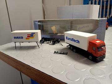 Modellino herpa Iveco Eurotech con rimorchio e casse scarrabili, scala 1:87, completo di scatola, come da foto allegate, vendo a euro 45,00