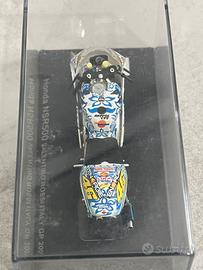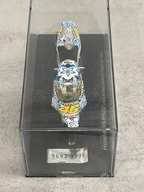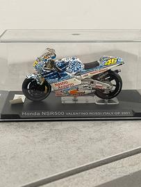 Vendo raro modellino moto Honda NSR 500 Valentino Rossi GP Italia 2001 Serie numerata scala 1:24 In perfette condizioni la teca non è stata mai aperta conserva ancora i sigilli originali. Veramente difficile da trovare in queste condizioni prezzo 50€