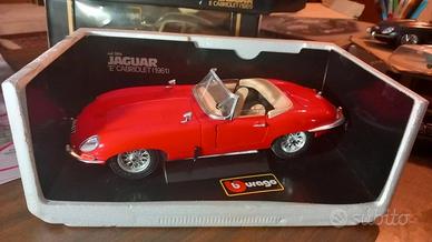 Modellino jaguar e type cabriolet 1961 burago 1:18 come nuova, nella sua confezione originale mai tolta dal supporto, perfetta.