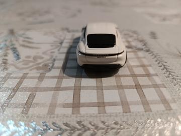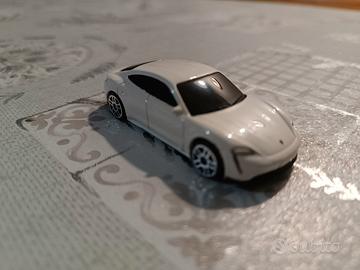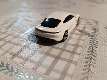 Modellino di un Porsche Taycan Turbo S bianca da collezionismo, realizzato con cura maniacale nei dettagli che riproducono fedelmente le linee sportive, l'aerodinamica raffinata e il design caratteristico della celebre berlina elettrica.