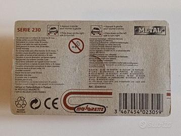 Modellino della Majorette riproducente la Fiat Coupè, colore giallo N. 201S (1995) La macchinina fa parte della Serie 230 "SuperS" Questa serie si contraddistingue dalla "normale" serie 200 per il fatto che i modellini hanno la caratteristica delle ruote sterzanti. Applicando infatti una pressione su uno dei due angoli anteriori del modellino, esso inclina le ruote secondo il principio di funzionamento su cui si basano gli skateboard (e come illustrato sul retro della confezione, vedi foto 4) L'auto si presenta integra in condizioni NOS nelle sua confezione/blister originale. Per ulteriori informazioni e foto non esitate a chiedere. Disponibile per consegna a mano in zona Almese (TO). Altri modellini disponibili (Hot Wheels, Majorette, Bburago, Polistil, Matchbox,.... guardate tra i miei annunci)