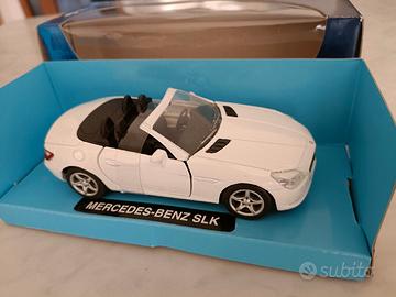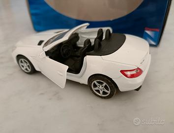 Vendo modellino in metallo di Mercedes SLK R172, con porte apribili. Scala 1:32. Lunghezza 13 cm. Meccanismo a retro-frizione. Nuovo in scatola originale aperta solo per le foto.