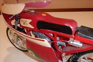 Modellino della storica moto da corsa Moto Morini 250 GP. Nello specifico, è il modello della moto guidata dal pilota italiano Tarquinio Provini nel Campionato del Mondo del 1963, identificabile dal numero 8 sul cupolino e sulla carenatura laterale.