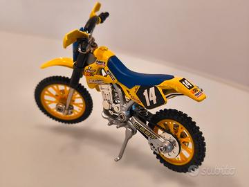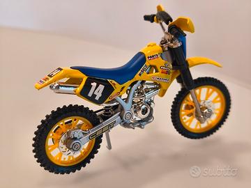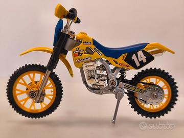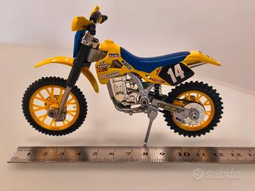 Modellino moto da cross Scala 1/18 Compreso secondo set di ruote e manopole intercambiabili. LUNGHEZZA 13cm