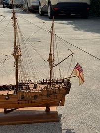 Vendo bellissimo modellino di nave a tre alberi, realizzato interamente in legno con cura artigianale e grande attenzione ai dettagli.