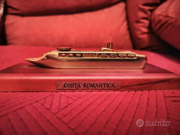 Modellino in ottone , con base in velluto della nave da crociera ' Costa Romantica ' . Come nuovo.