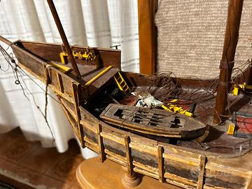 L’opera è costruita in legno e materiali di qualità, curando ogni particolare: dalle vele in stoffa ai piccoli cordami del ponte. Non è un giocattolo, ma un pezzo d'artigianato ideale per arredare con eleganza un salotto, uno studio o una libreria.