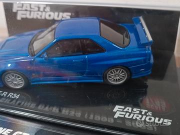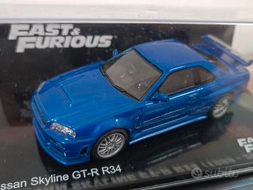 Modellino della Nissan Skyline GT-R R34, Fast & Furious. Completo di fascicolo e teca espositiva. Scala 1:43