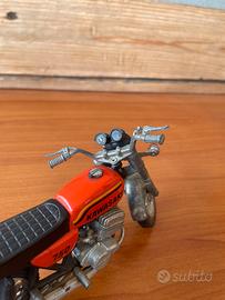 Modellino Politoys MS103 Kawasaki 750 in scala 1:15, produzione anni ‘70. Modello vintage realizzato in metallo pressofuso (diecast) con particolari in plastica, molto dettagliato e ricercato dai collezionisti di moto e giocattoli d’epoca Politoys / Polistil. Condizioni: buone condizioni generali manca solo una freccia posteriore presenti normali segni del tempo cavalletto funzionante Adesivi e dettagli ben conservati #diecast #modellismo #vintage #motorcycle #kawasaki #arancione #vintage #toycollector #collezione #motociclismo #polistil