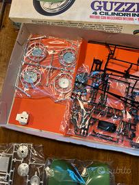 MODELLINO PROTOR MOTO GUZZI 500 Ce. B CILINDRI. RIPRODUZIONE FEDELISSIMA IN SCALA 1: 9 DEL FAMOSO MODELLO DA GRAN PREMIO CHE VINSE IL CAMPIONATO ITALIANO DEL 1957 CON GIUSEPPE COLNAGO E DETENTORE DEL PRIMATO MONDIALE ASSOLUTO SUI 10 KM. TUTTI PEZZI INTEGRI ANCORA DA MONTARE. SOLO LA SCATOLA E' LEGGERMENTE SEGNATA DA MACCHIE DI UMIDITÀ E NON PERFETTAMENTE INTEGRA.