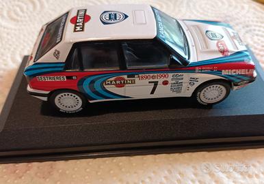 Lancia Delta Integrale vincitrice Rally di Montecarlo 1990, equipaggio Auriol - Occelli con base come da foto. Regalo molto bello da esporre in vetrinetta..fabbricata in metallo, base in plastica