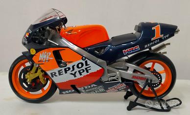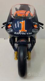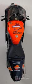 Modellino Guiloy Honda HRC Repsol 500, scala 1/6 in metallo con sospensioni e pneumatici in vera gomma (non in plastica).