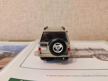 Modellino da collezione in scala 1:43 della Toyota Land Cruiser compreso di scheda con storia e dati tecnici di questo modello.