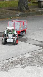 Modellino di trattore Fendt 936 vario radiocomandato scala 1a 10 con trazione posteriore . Rimorchio a due assi ammortizzato marca zaccaria con rovesciabile elettrico .servono Batterie lipo e/o nickel cadmio 12 volt per le 28 luci e lampeggiante. Da 7,2 volt per la trazione .Per la radio n.10 stilo da 1,5 - il tutto autocostruito. Non comprende batterie al radiocomando ne caricatore per batterie luci e trazione. In dotazione anche aratro a 3 vomeri sollevato marca Fratenali.