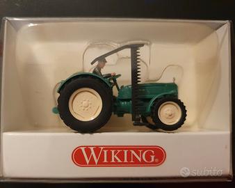 Vendo modellino di trattore MAN con falciatrice. Marca WIKING. Scala 1:87. Originale. Tutto in materiale plastico. Gomme in materiale gommoso. Ruote girevoli. Asse anteriore basculante. Falciatrice basculante.