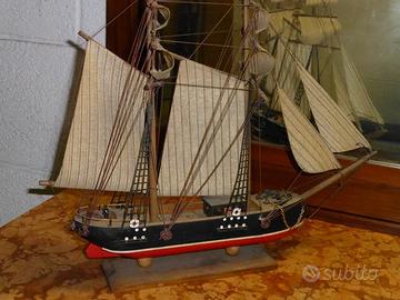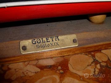 Modello di Goletta in legno con piedistallo. Ottime condizioni, solo un po’ impolverata. Lunghezza 37cm, altezza 30cm Vendo a 25 euro. Consegna a mano su Roma in zona Monteverde Piramide EUR San Giovanni