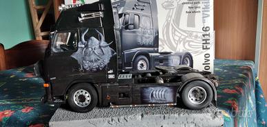 Modellino Volvo FH 16 versione Viking, nero metallizzato in perfetto stile nordico. Scala 1/24 , lunghezza 25 cm, kit in plastica montato e verniciato. E' preferibile il ritiro a mano data la presenza di piccole parti incollate che potrebbero staccarsi in caso di spedizione a mezzo corriere. Si accettano offerte.