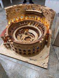 Vendo splendida riproduzione del Colosseo (Anfiteatro Flavio), interamente realizzata a mano in legno. L'opera non è un kit commerciale, ma un pezzo unico frutto di mesi di meticoloso lavoro artigianale.