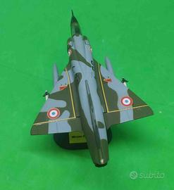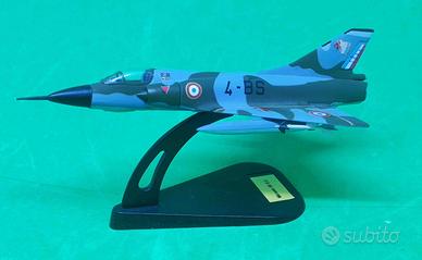 DESCRIZIONE. l modello, prodotto da Italeri in scala 1/100, è in metallo pressofuso con dettagli in materiale plastico. Il modello è una fedele riproduzione del caccia Dassault Mirage III CJ appartenente alla famiglia di aerei da combattimento monomotore monoposto/biposto sviluppati e prodotti dalla società aeronautica francese Dassault Aviation. Fu il primo aereo da combattimento dell'Europa occidentale a superare, il 24 ottobre 1958, i Mach 2 in volo orizzontale. Il primo grande modello di produzione, il Mirage IIIC, era un intercettore monoposto, con motore turbogetto Atar 09B, dotato di scarico variabile. Volò per la prima volta nell'ottobre del 1960. Il Mirage IIIC era armato con due cannoni DEFA da 30 mm montati nella pancia con le canne dei cannoni sotto le prese d'aria. I primi Mirage IIIC di produzione avevano tre piloni di stoccaggio, uno sotto la fusoliera e uno sotto ciascuna ala poi fu aggiunto un altro pilone esterno su ciascuna semiala, per un totale di cinque. Il pilone esterno era destinato a trasportare un missile aria-aria Matra R550 Magic.