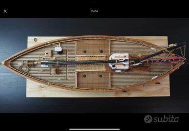 Modello di barca a vela in legno RC Fatta completamente da 0, pregiato legno di pero e tiglio Funi e cavi fatte a mano, colorate e incerate Vele in tessuto Inclusa batteria, motori, servo e telecomando Pompa di sentina di sicurezza