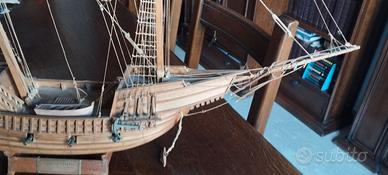 Modello di veliero costruito a mano in legno. Si tratta di un galeone veneto del XVI secolo. In buone condizioni, necessita di poco restauro Dimensioni : lunghezza 80 cm, larghezza 17 cm, altezza 70 cm. Non spedisco, ritiro in zona Modena