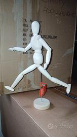 BELLISSIMO MANICHINO IN LEGNO SNODATO CON SUPPORTO PER ARTE E DISEGNO.