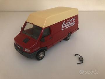 Modellino camion Iveco Daily Turbo scala 1/43 1:43 furgone coca cola, completo di specchietti, Old Cars. Camion sempre esposto a circa 30 anni, ha due segni del tempo che sono evidenziati nelle foto. In regalo specchietto Iveco old Cars per eurostar e eurotech 1/43